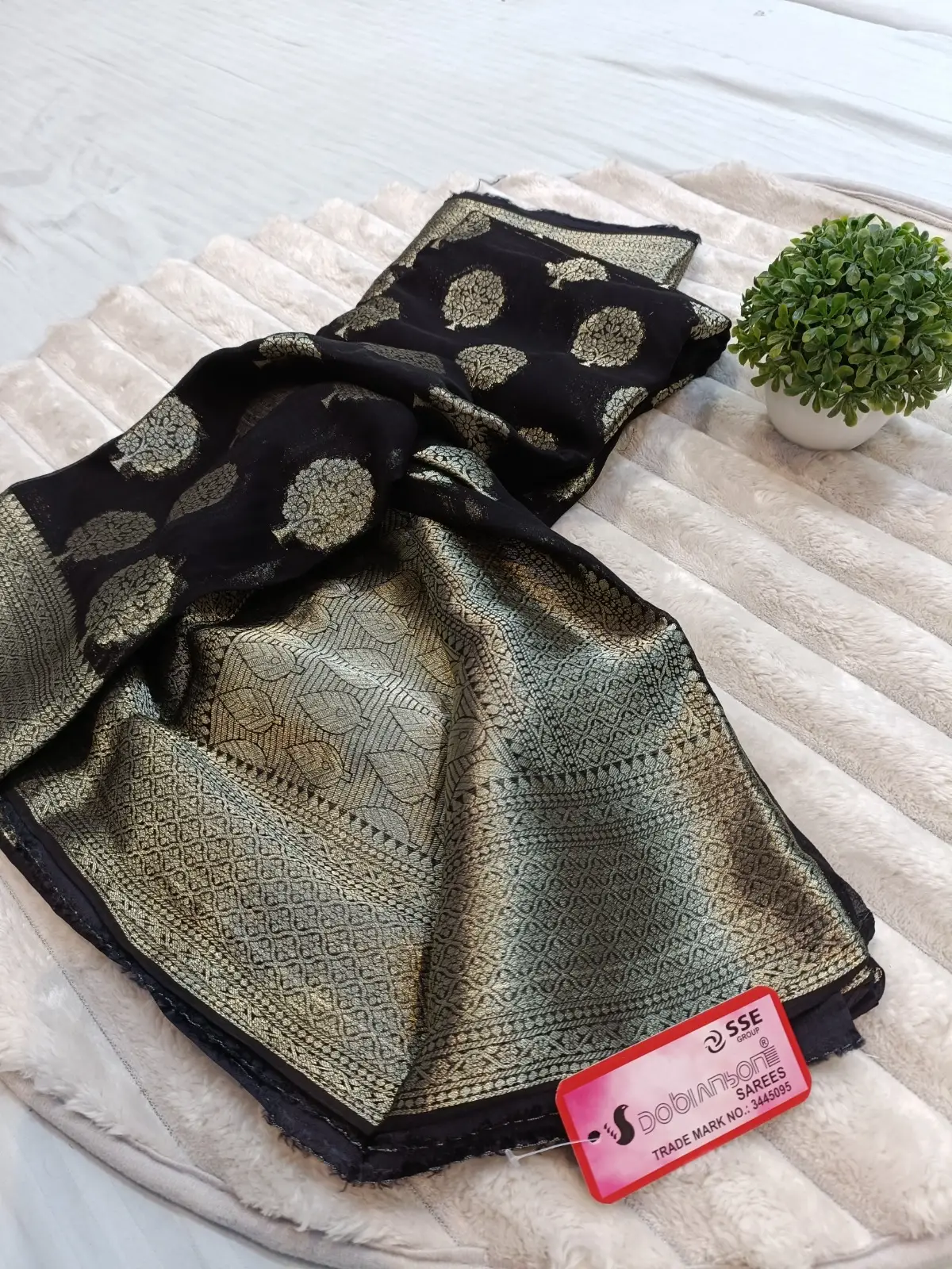 📌 Fabric: Pure Chiffon | Work: Banarasi-Style Weave with Rich Palla | Care: Dry Clean Only | Caution: No Iron Needed (Fabric Prone to Burn)